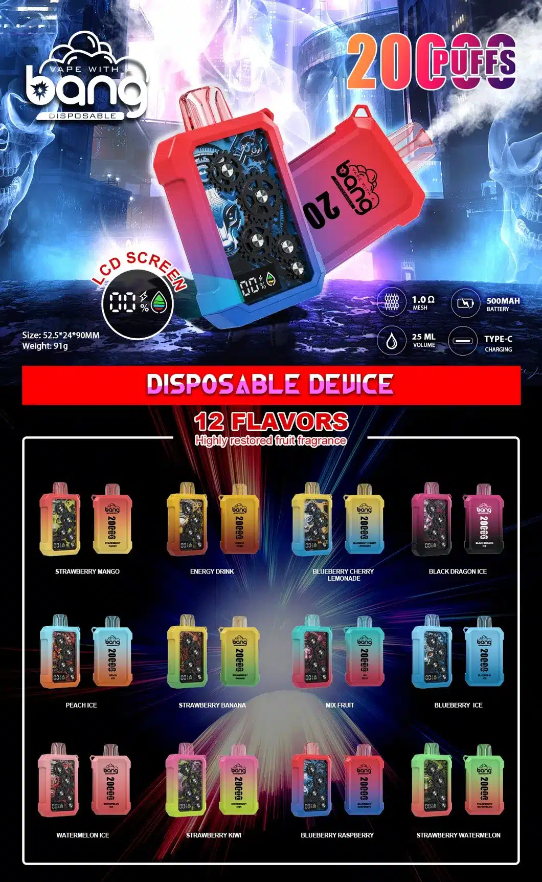 BANG WHEEL 20000口一次性電子煙|雙口味旋轉切換・超大容量・LED 顯示