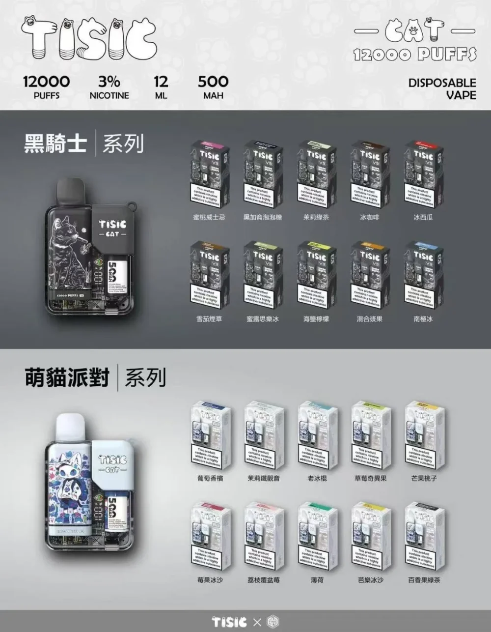 TISIC 黑騎士&萌貓派對 12000口一次性電子煙 主打高顏值與高續航,