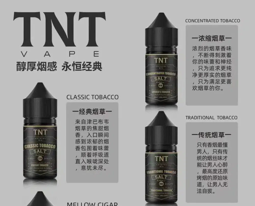 TNT 菸草系列 30ML 小煙油 由專業調香師精心調配,